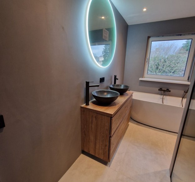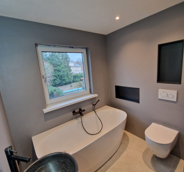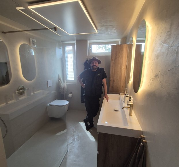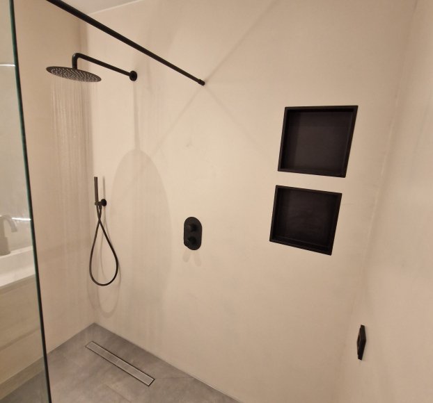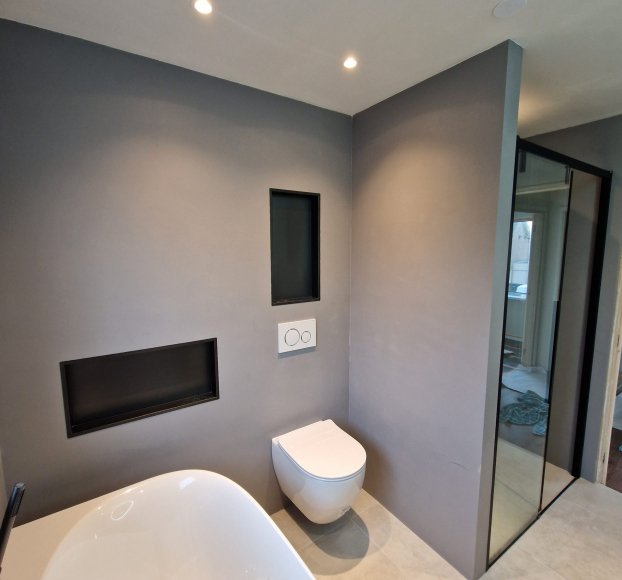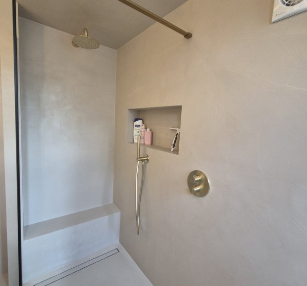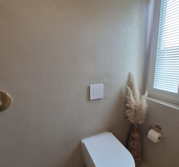 Beton cire voor badkamers wordt bovenop de bestaande bekleding aangebracht, zonder dat de muren gesloopt hoeven te worden. Juist daarom is beton cire zo populair, want omdat er geen daadwerkelijke bouwwerkzaamheden aan te pas komen, blijft het toilet in gebruik terwijl de renovatie van de ruimte in het huis wordt uitgevoerd.